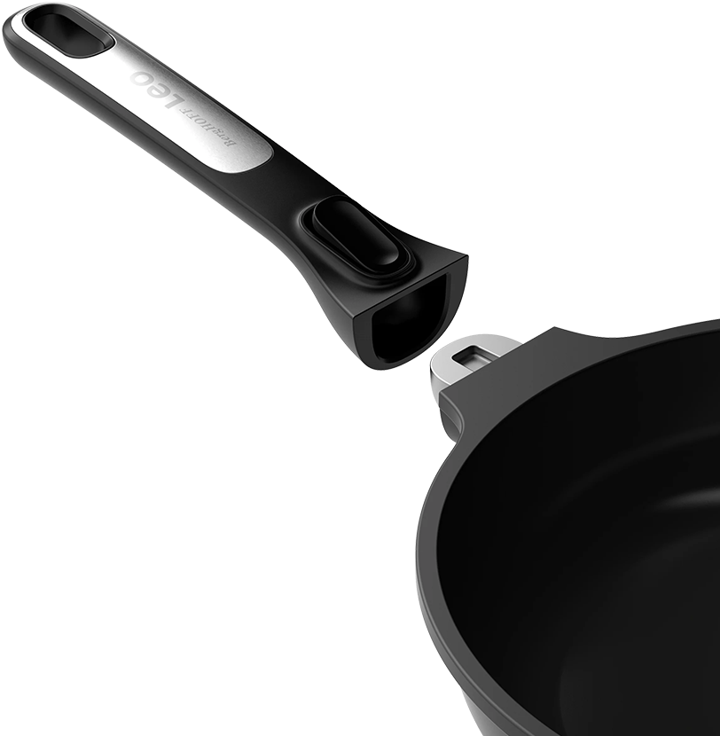 Poignée amovible en un clic. Facile à mettre au four et astucieux à ranger. Ça, c'est vraiment excitant.