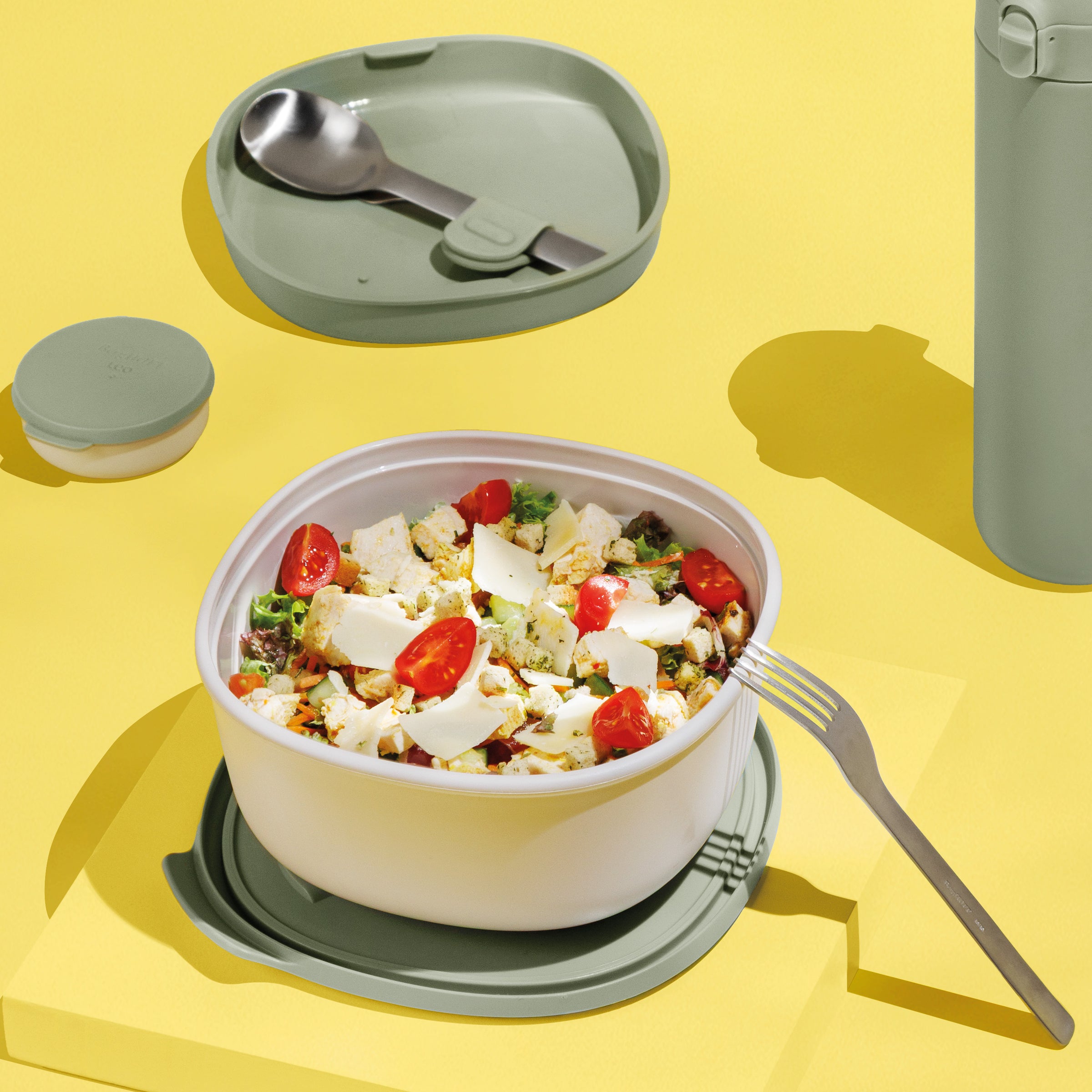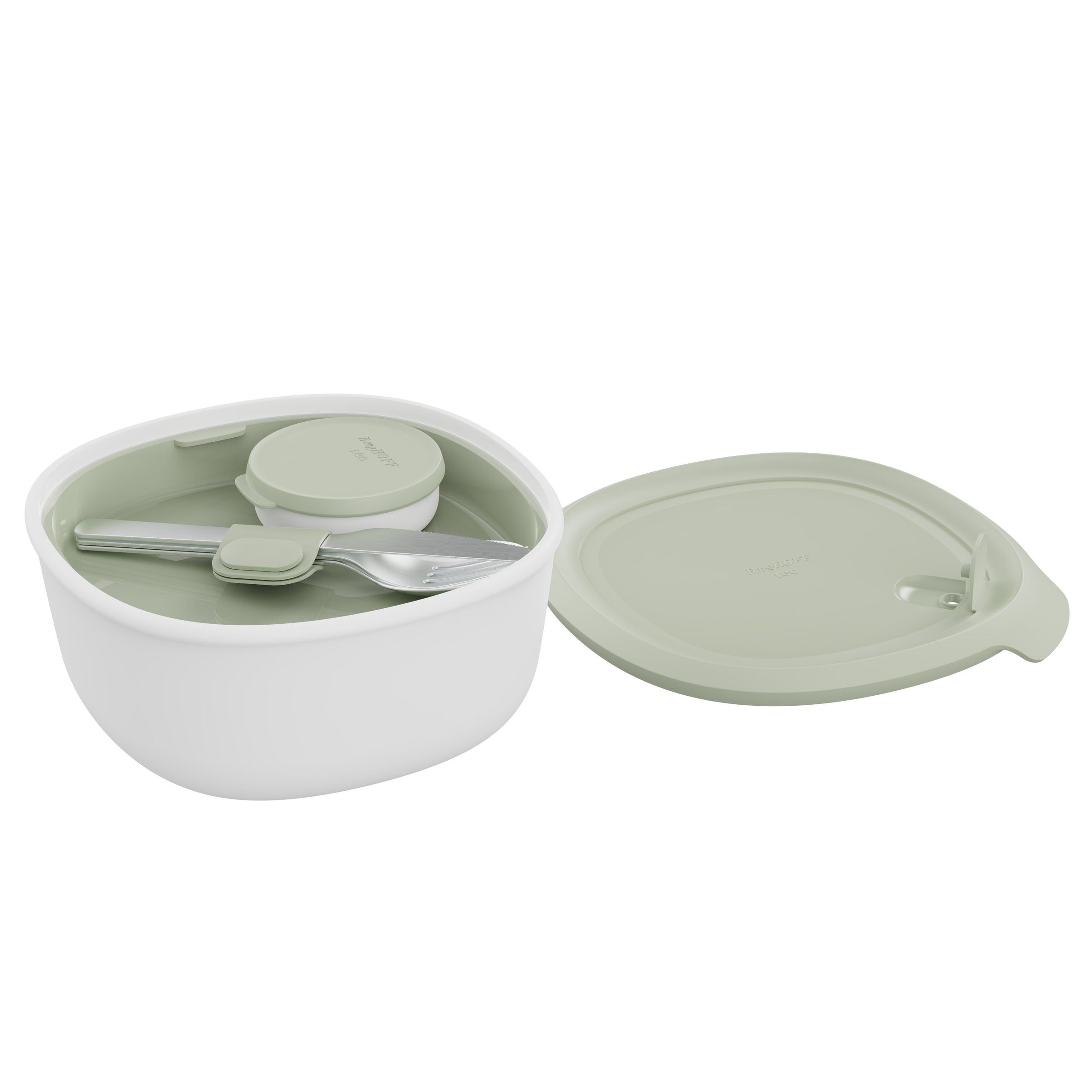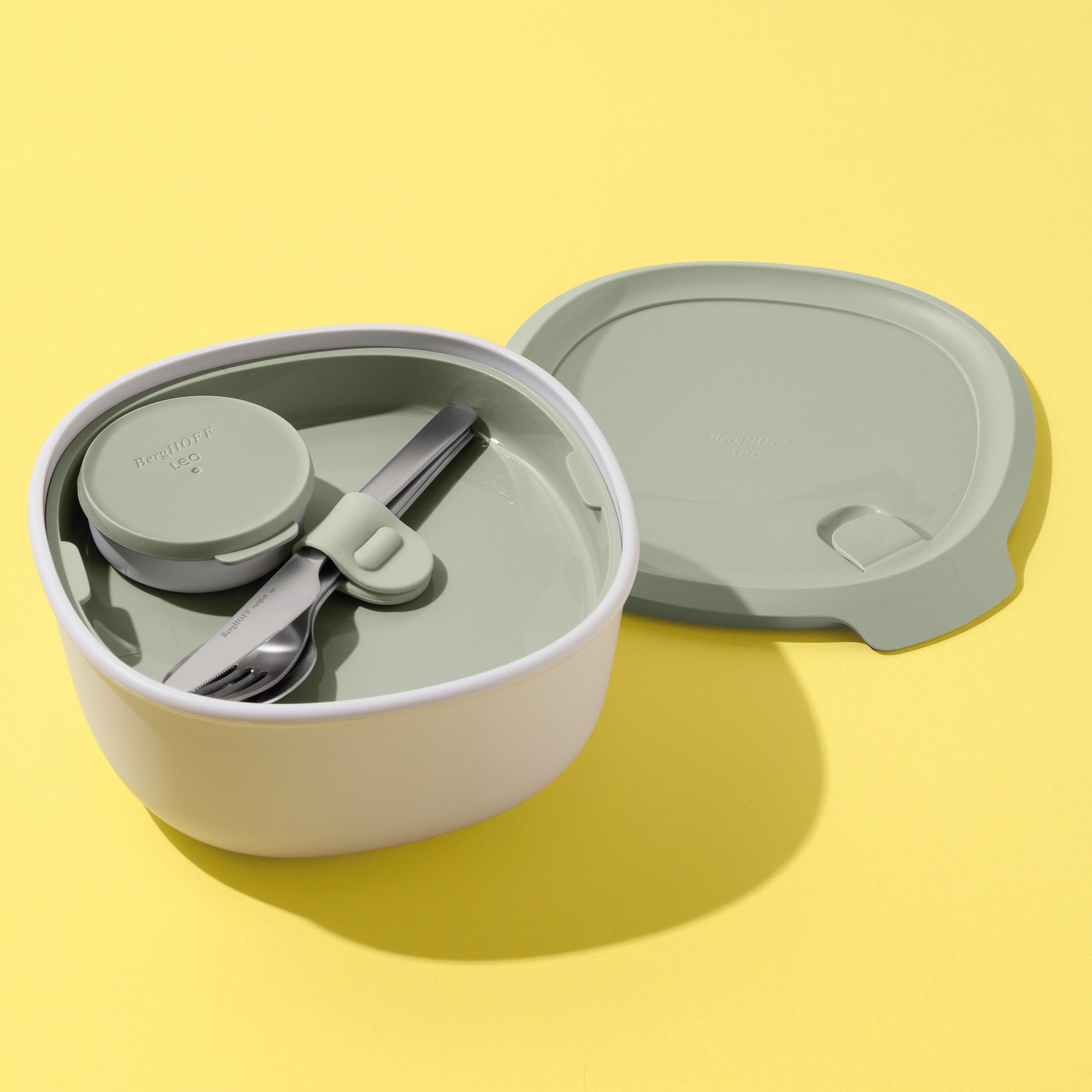 Votre compagnon de repas tout-en-un ! Cette boîte à lunch avec ensemble de couverts est conçue pour un maximum de commodité avec un design en deux parties pour séparer les différents aliments, un ensemble de couverts inclus et même un récipient en forme de soucoupe pour les vinaigrettes ou les sauces. L'évent à vapeur intégré permet de réchauffer les aliments au micro-ondes en un clin d'œil (sans l'ensemble de couverts), et il est étanche, résistant au congélateur et lavable au lave-vaisselle. Prêt pour le déjeuner, où que vous soyez !