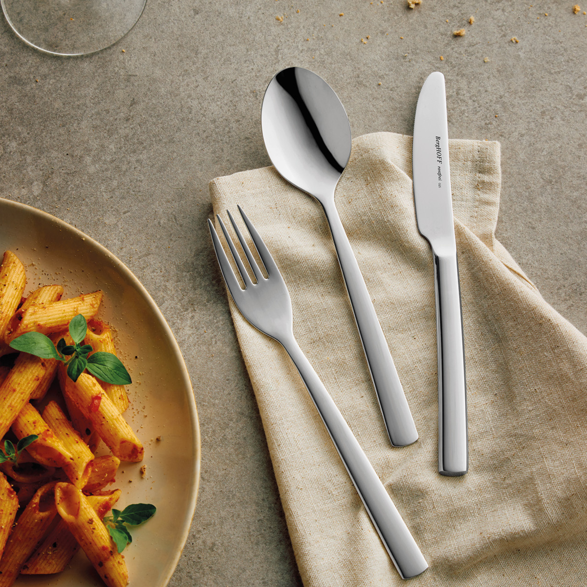 Optez pour le classique avec le set de couverts 3 pièces Pure – votre trio incontournable pour les repas quotidiens. Fabriqué en acier inoxydable de haute qualité avec une finition miroir élégante, ce set apporte une élégance intemporelle à toute table. Compatible lave-vaisselle et prêt pour une utilisation quotidienne – la simplicité à son meilleur !